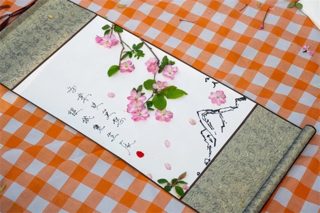 活动的重头戏,当属落花画轴创作。