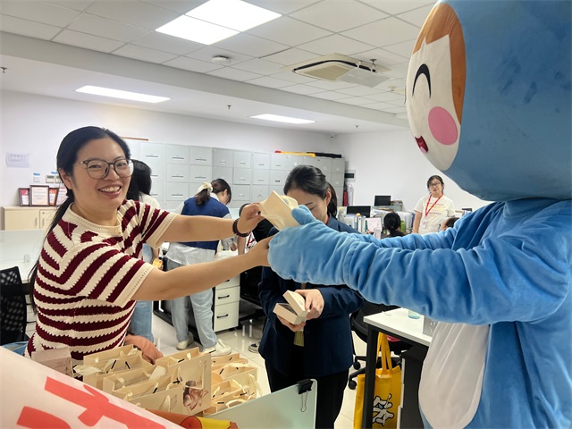 当可爱的“小蓝鲸”人偶迈着欢快的步伐登场,现场瞬间变成了欢乐的海洋。它不仅是派送礼物的小天使,更是我们企业文化活泼、友爱的象征。一份份礼物,传递的是一份份沉甸甸的心意。